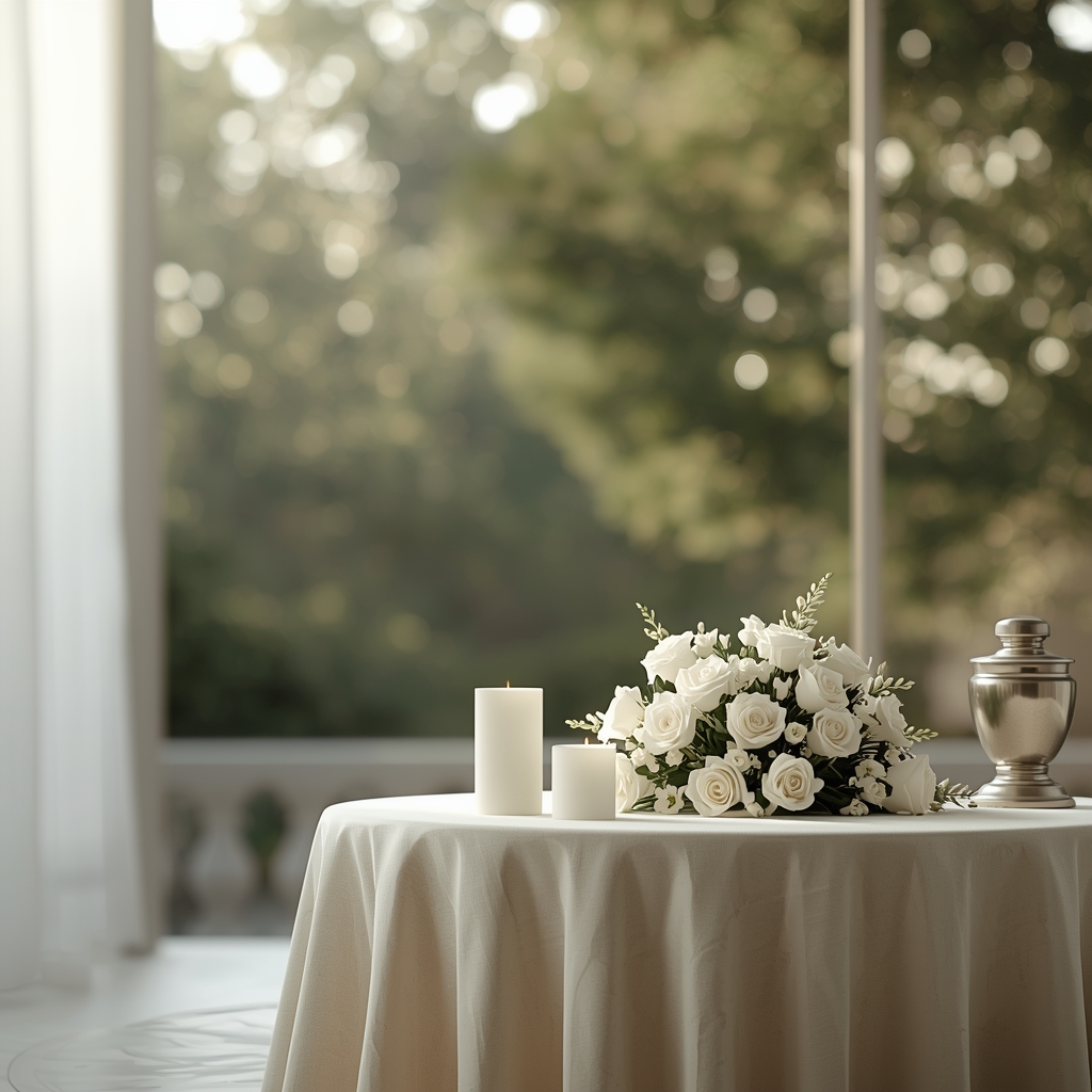 Intim környezetben, otthon vagy egy bérelt helyszínen is tartható urnás búcsúztatás. Minden szükséges technikai kelléket biztosítok a búcsúztatáshoz, hogy a család saját közege adjon méltó keretet az utolsó elköszönésnek.